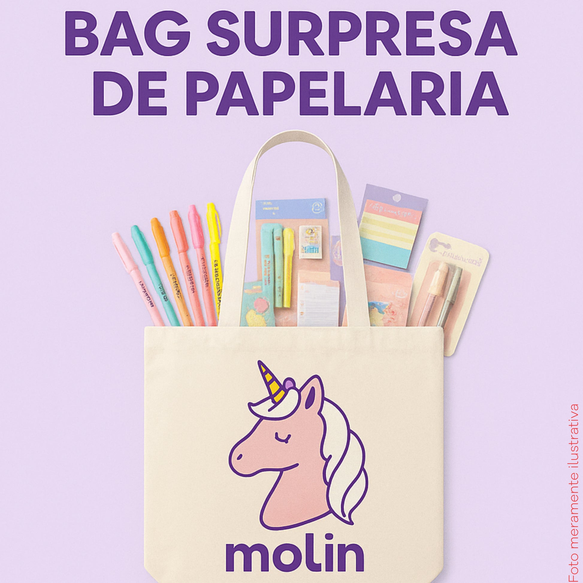 Bag Surpresa de Papelaria - Papelaria Unicórnio + Ecobag Molin