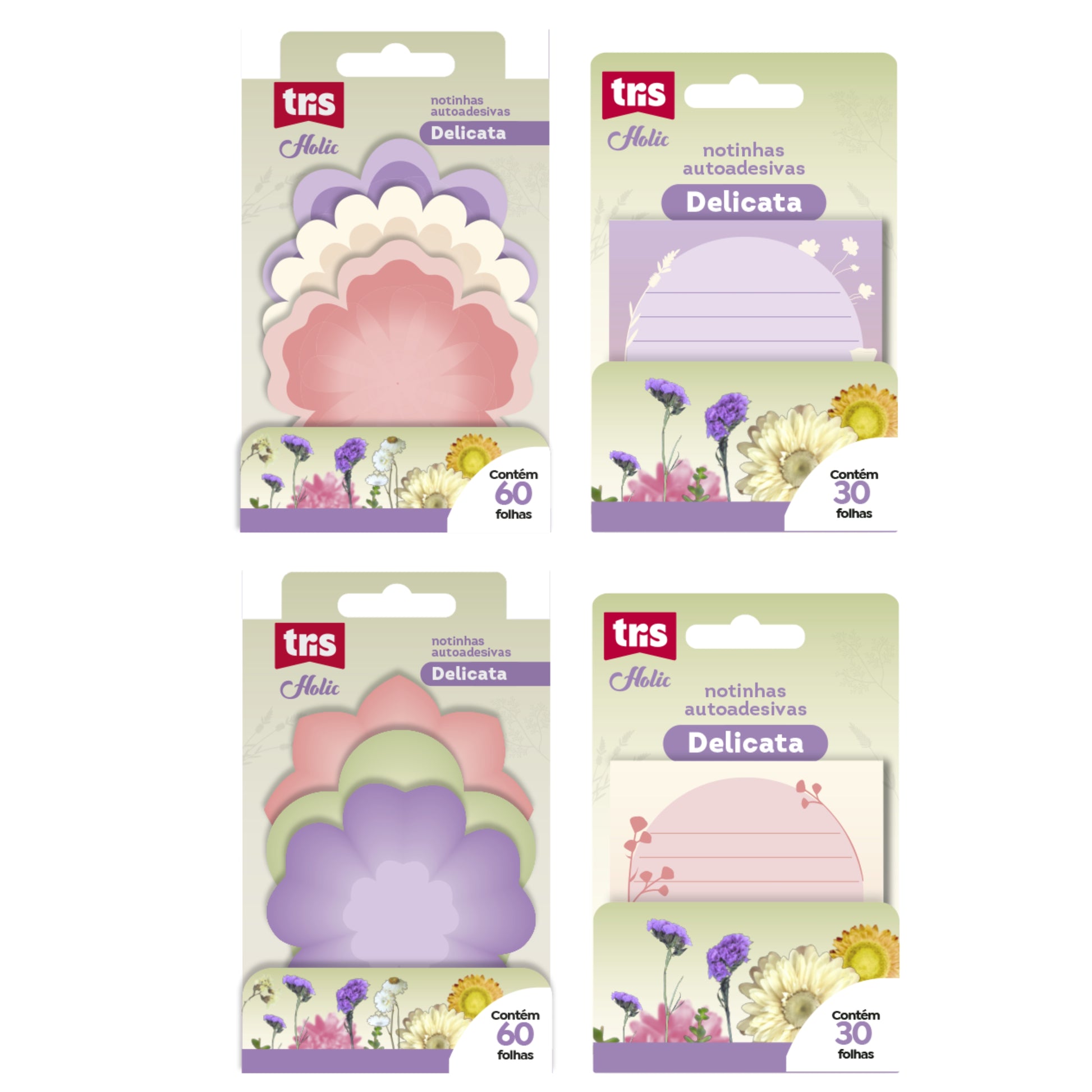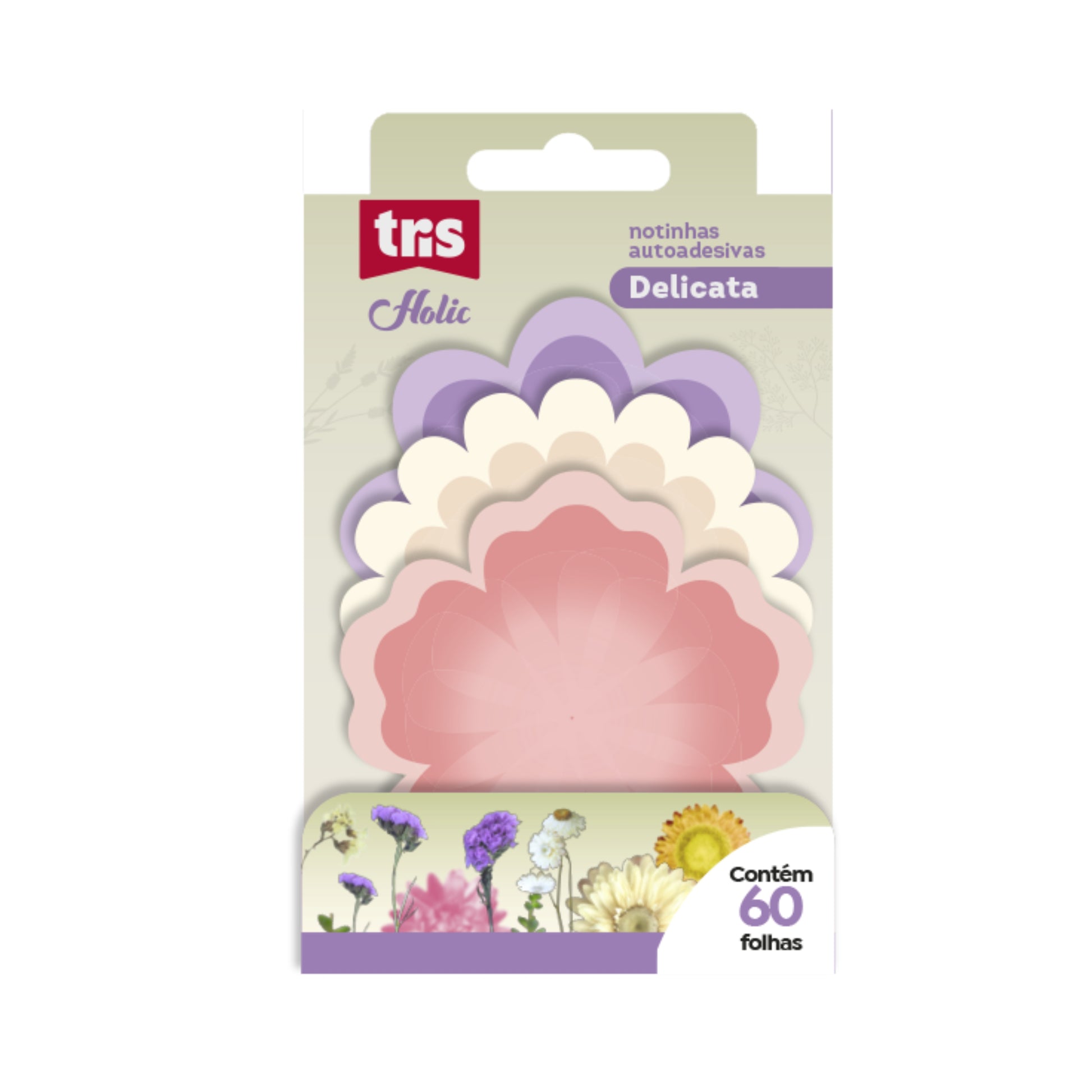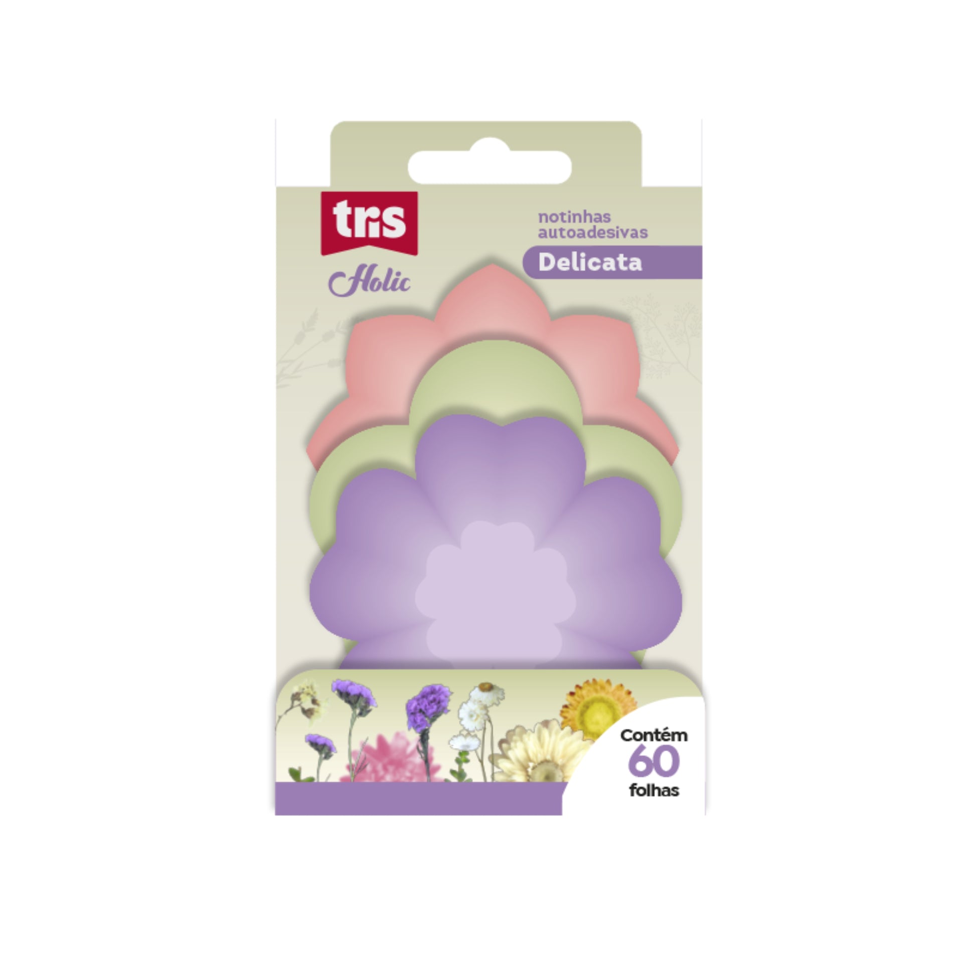 O Bloco Adesivo Delicata da Tris traz o mood floral em cores suaves e material translúcido, perfeito para quem ama papelaria romântica e poética. São diferentes formatos de notas para anotações criativas, recados fofos e organização cheia de charme.