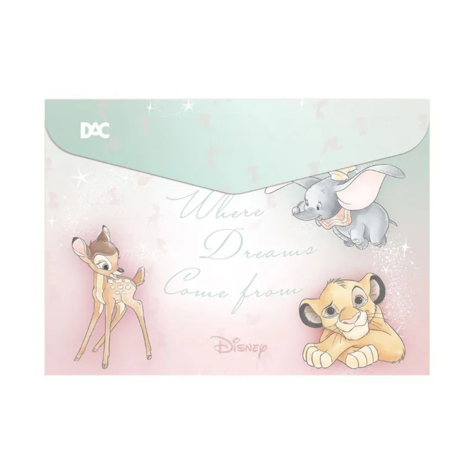 O Bloco de Carta DAC Disney é um convite especial para resgatar o prazer da escrita. O kit contém 20 folhas em formato A4, superdecoradas com artes dos clássicos O Rei Leão, 101 Dálmatas, Bambi e Dumbo. O conjunto é completíssimo, vindo com 20 envelopes de alta gramatura e uma cartela de adesivos A5 para selar e personalizar cada mensagem com a magia da Disney.