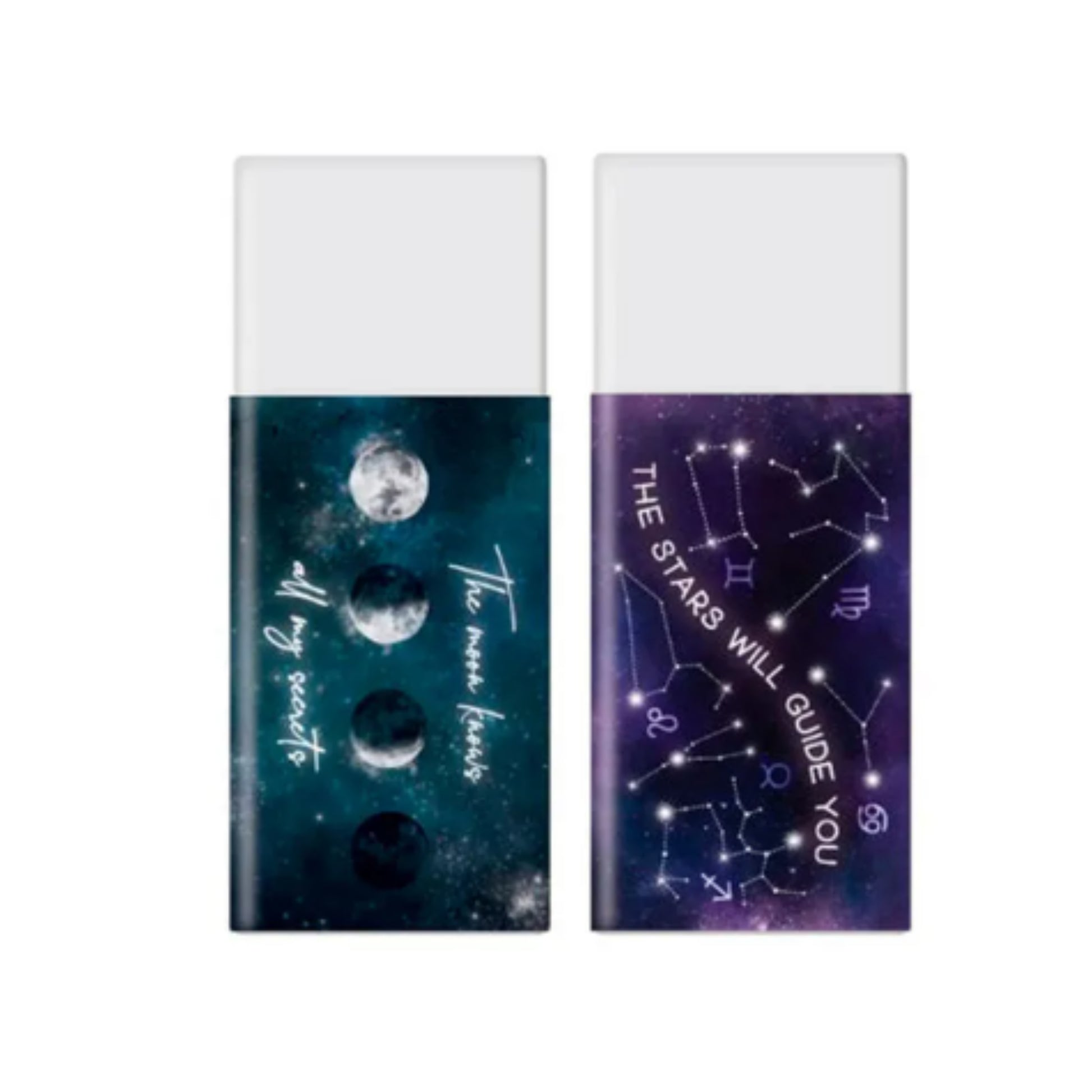 A Borracha Magic da Tilibra é macia e eficiente, ideal para apagar sem deixar sujeira ou rasuras no papel. Inspirada no fascínio por astros e elementos do espaço, ela possui uma capa protetora decorada nas variações Constelação e Fases da Lua, que ajuda a manter a borracha limpa e aumenta o conforto no uso. Sua fórmula é livre de produtos tóxicos como o ftalato, garantindo segurança total.