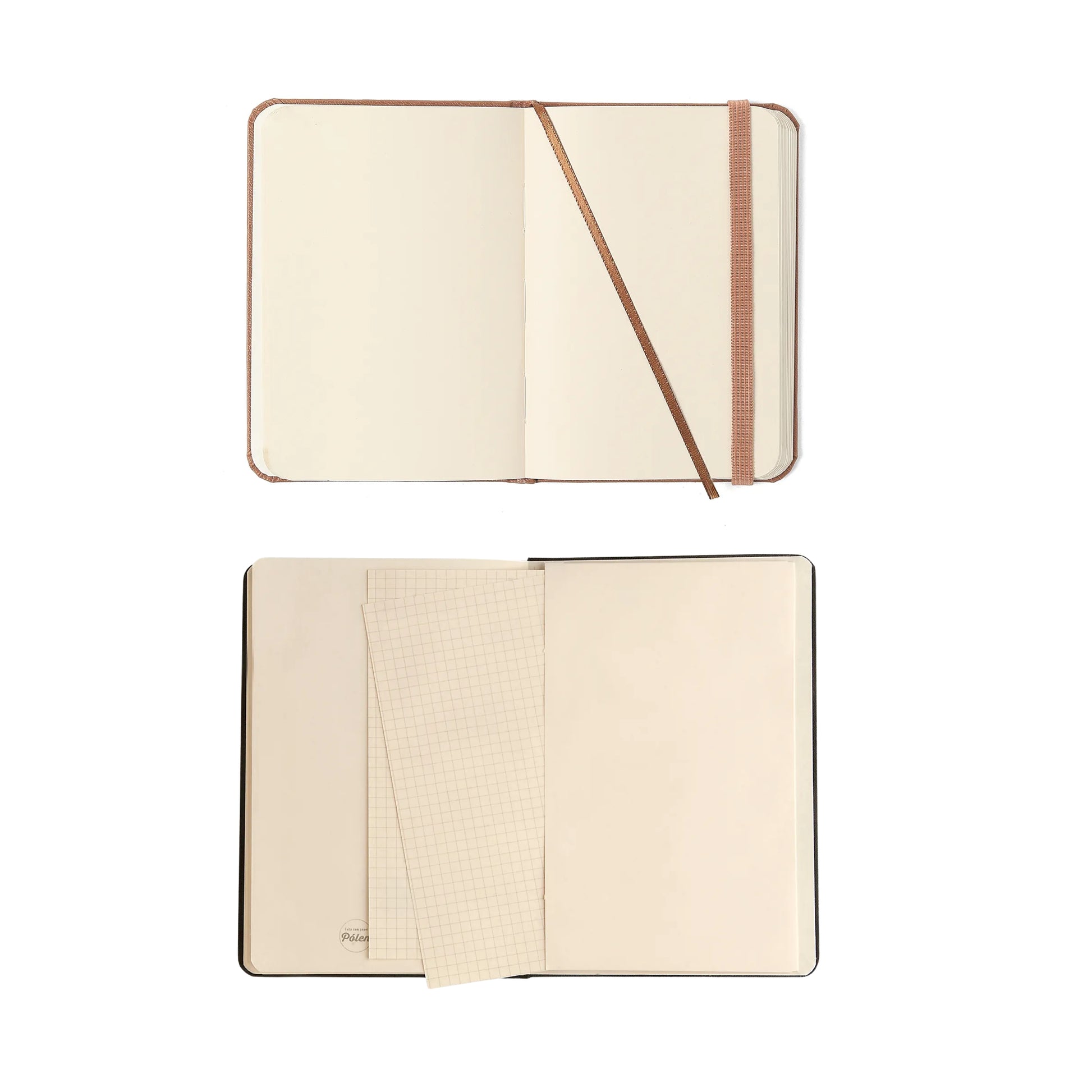 Capa Dura, Elástico para fechamento, Fita Marcadora de Página, Bolsa Interna.