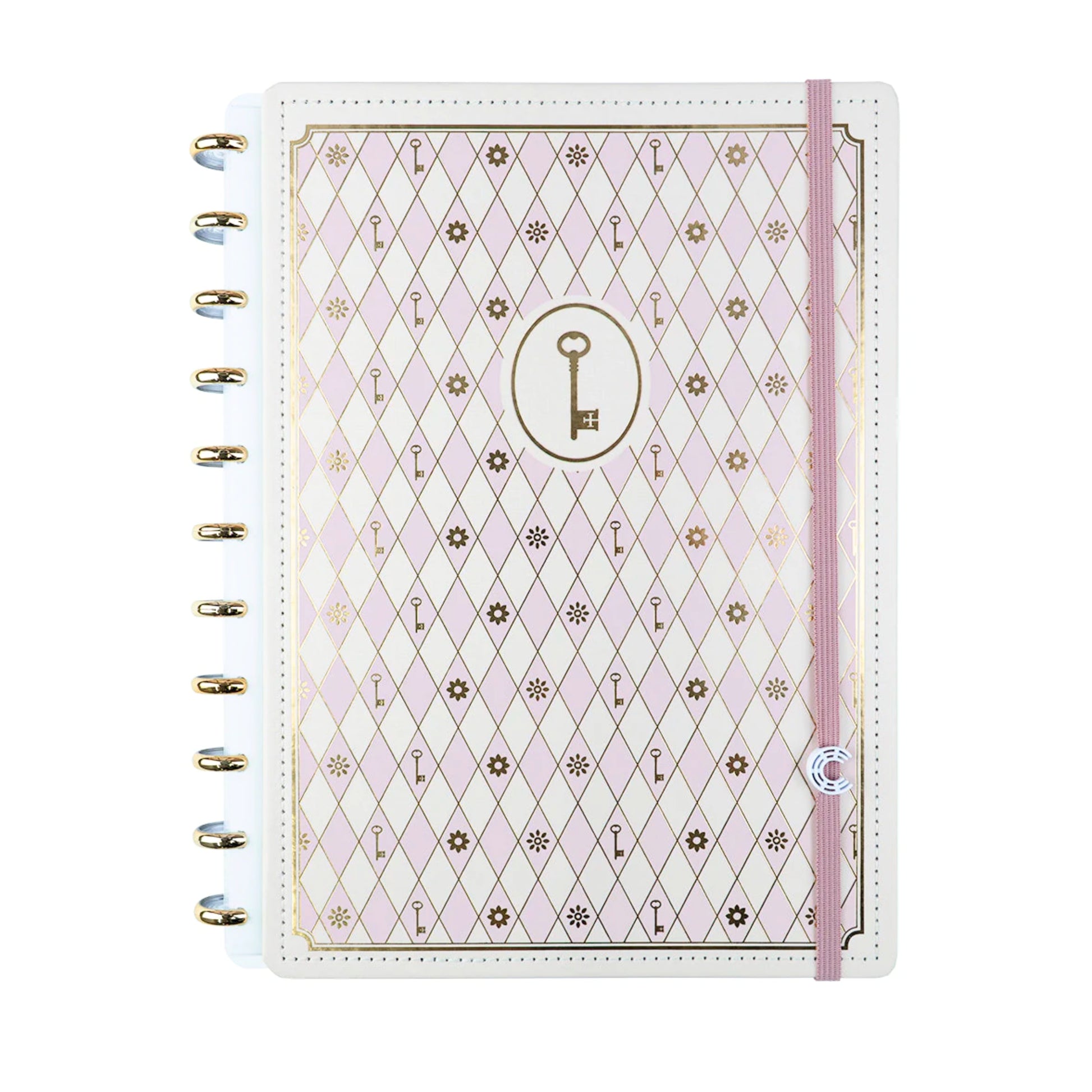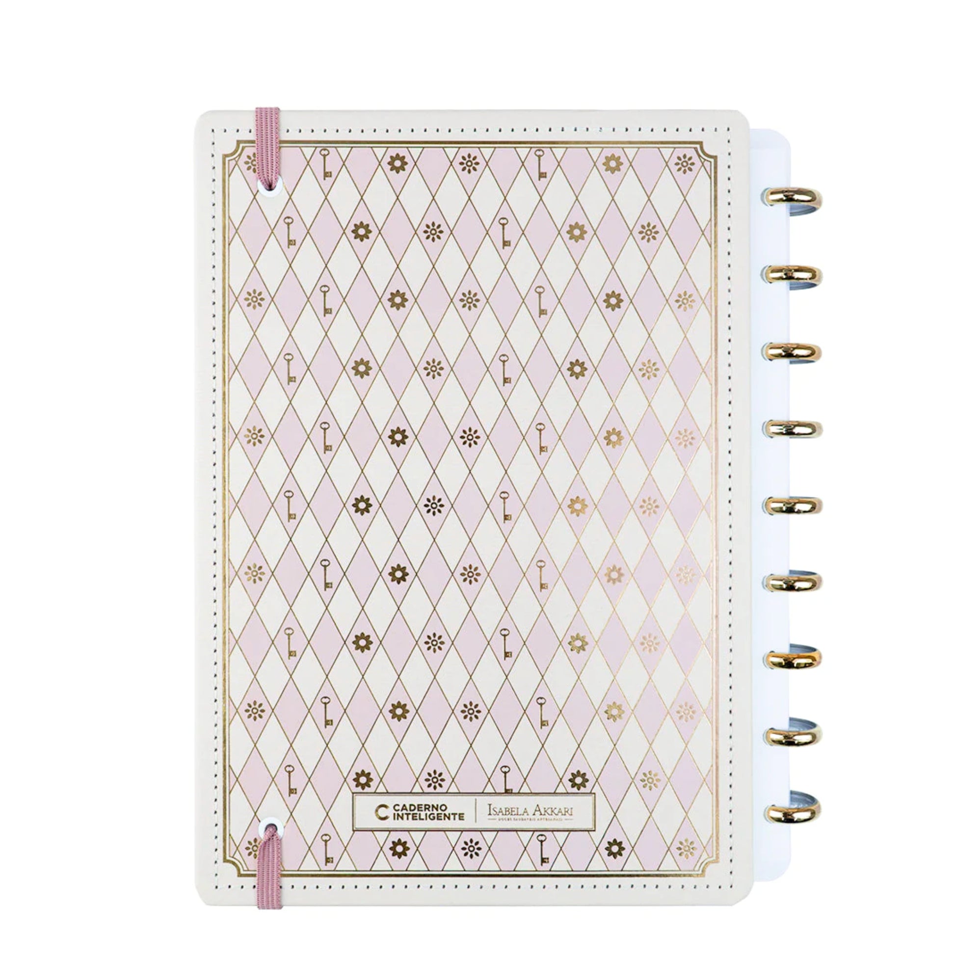 O Caderno A5 Rose Key by Isabela Akkari da Caderno Inteligente une delicadeza, charme e um toque de magia em cada detalhe. Com acabamento dourado, discos metálicos e tons suaves, ele foi feito pra deixar suas anotações ainda mais especiais — e ainda vem com receita de bolo da própria Isabela!