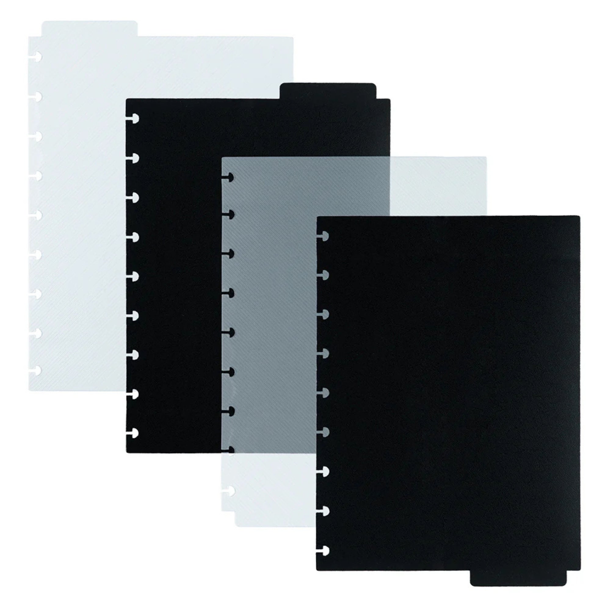 04 divisórias com abas para identificação (02 pretas e 02 transparentes)
