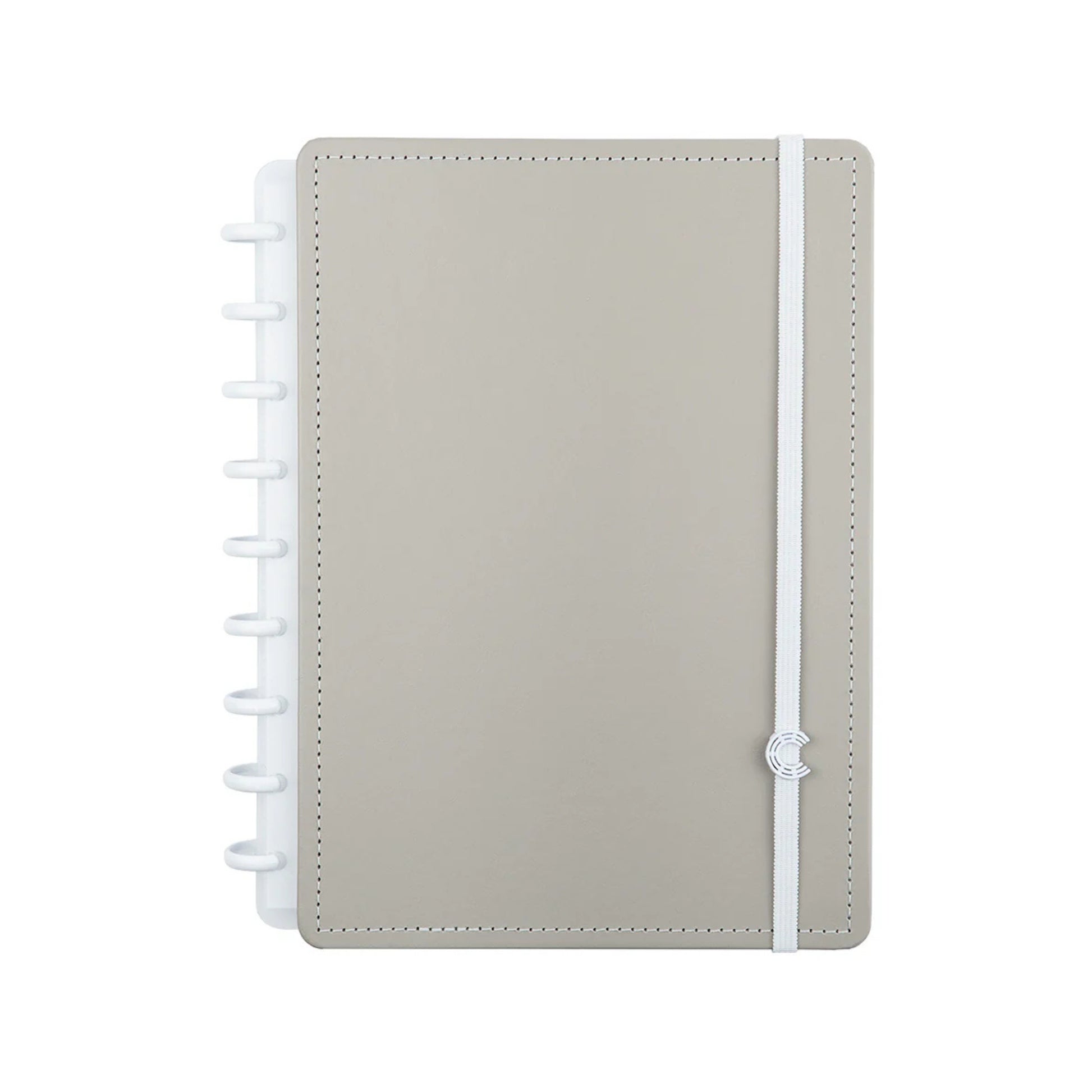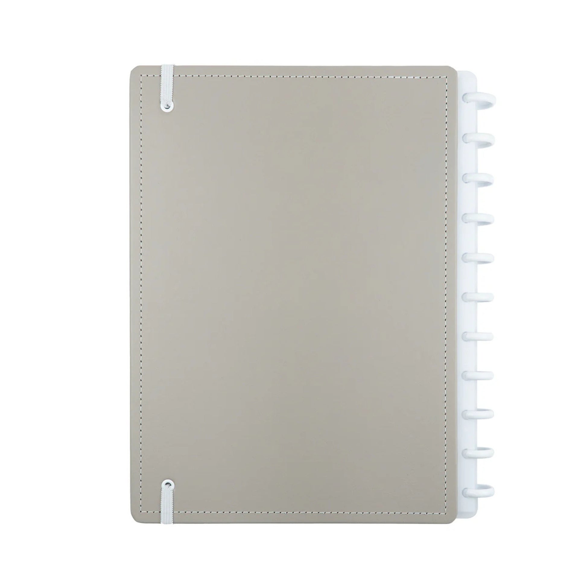 Discos M + elástico: Para prender as folhas e manter o caderno fechado com segurança.