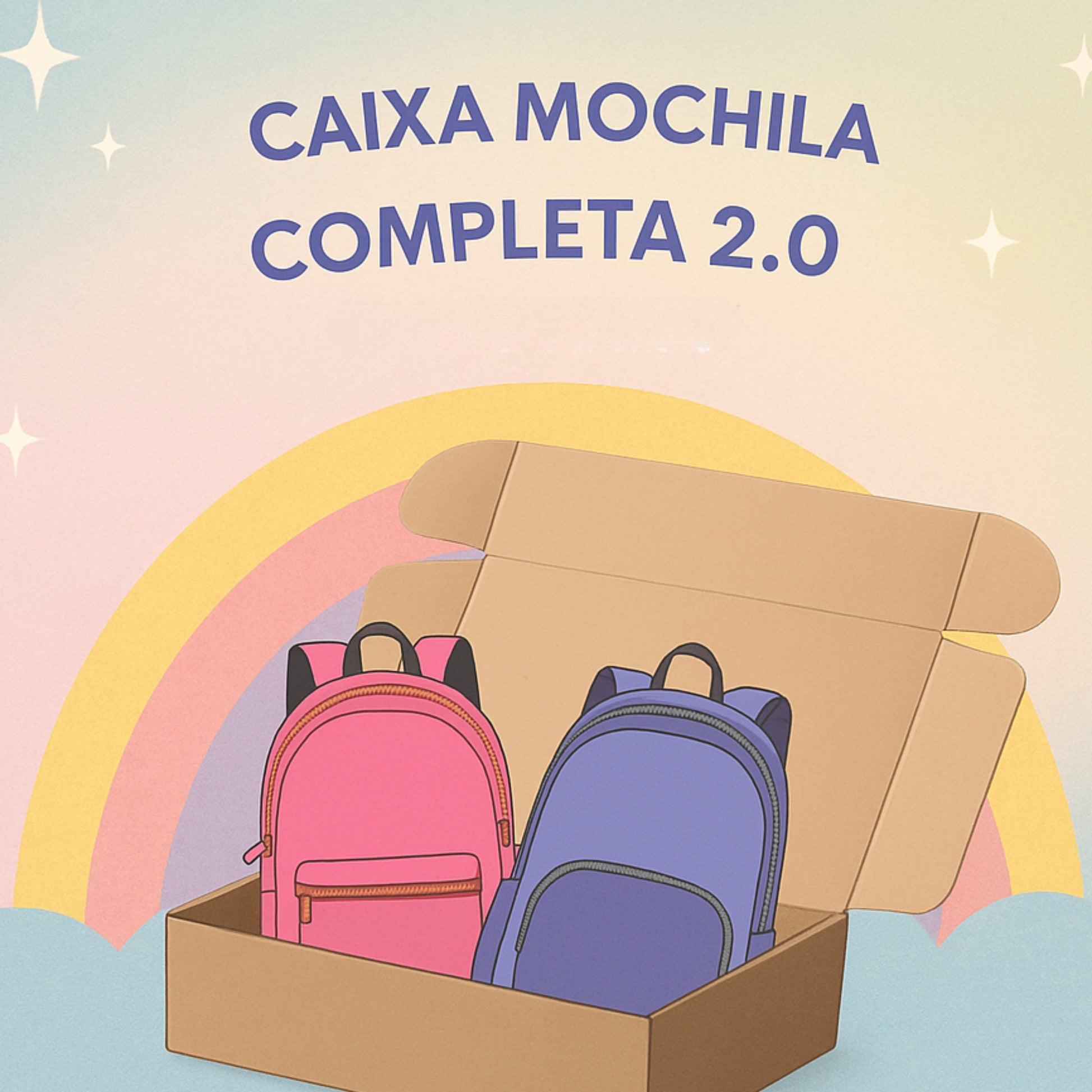A Caixa Mochila Completa 2.0 foi criada pra quem ama a ideia de ter uma mochila cheia de itens incríveis, mas quer uma versão mais acessível da nossa famosa Caixa Mochila Completa. Ela vem com uma mochila linda (de qualquer modelo disponível no site, exceto Kipling) e tudo que você precisa pra começar o ano com estilo e praticidade: caderno, estojo, lápis, canetas, marcadores, e outros itens essenciais de papelaria.