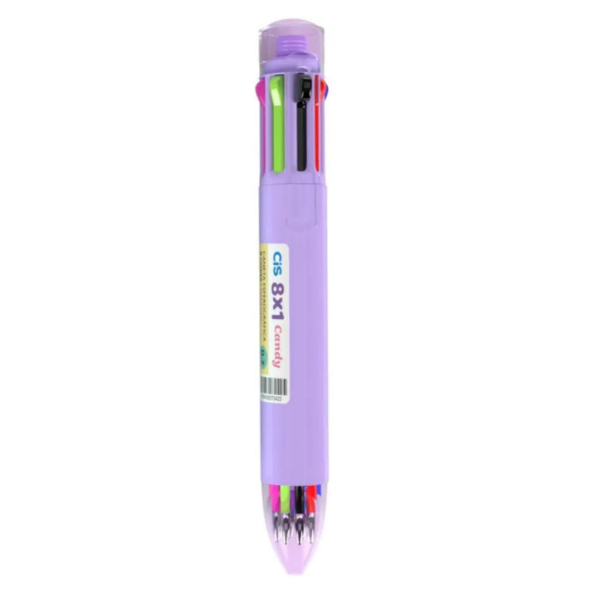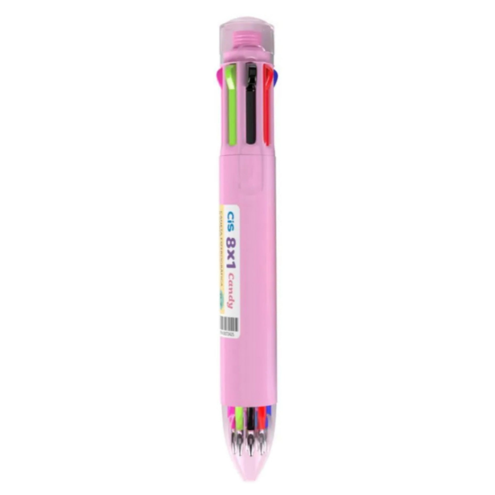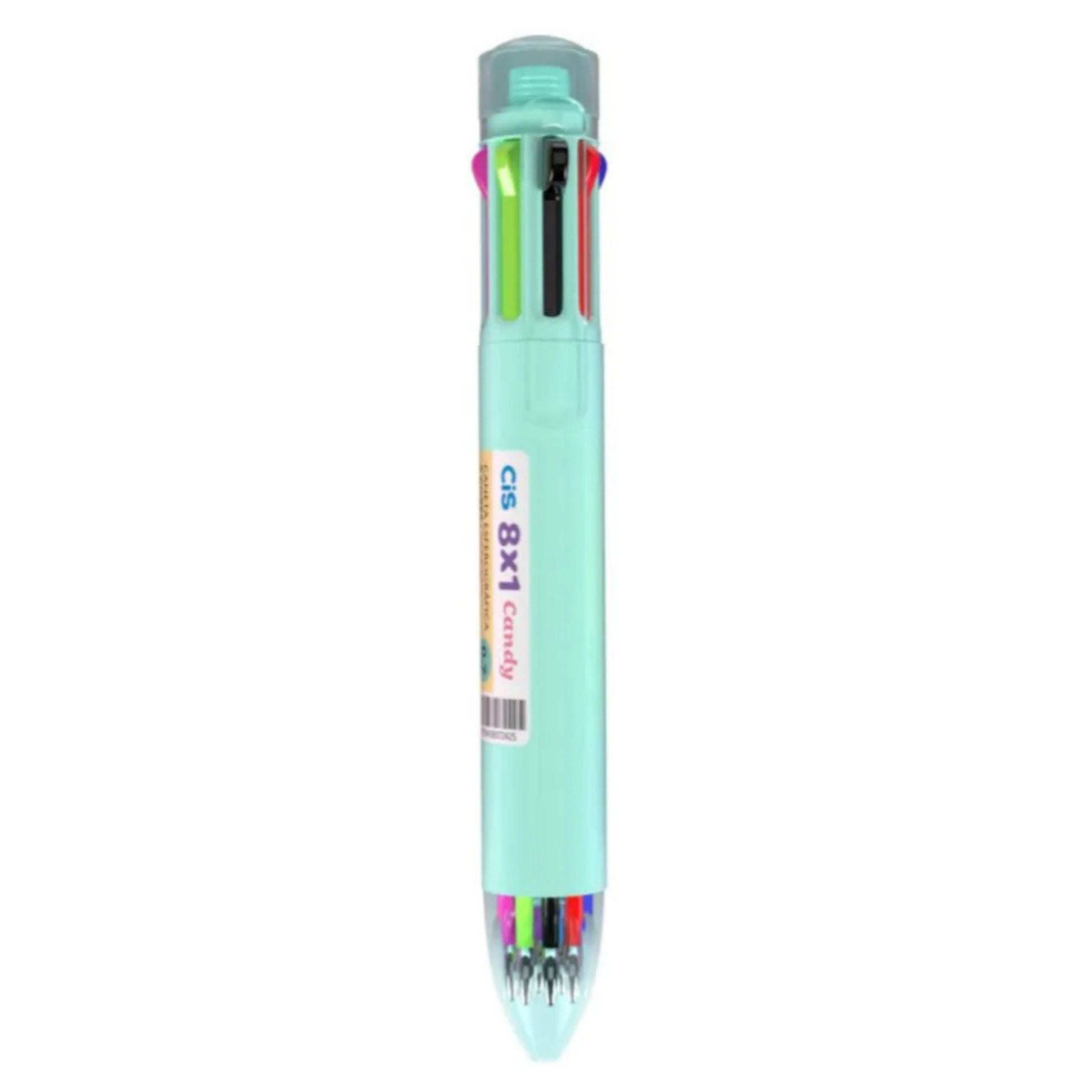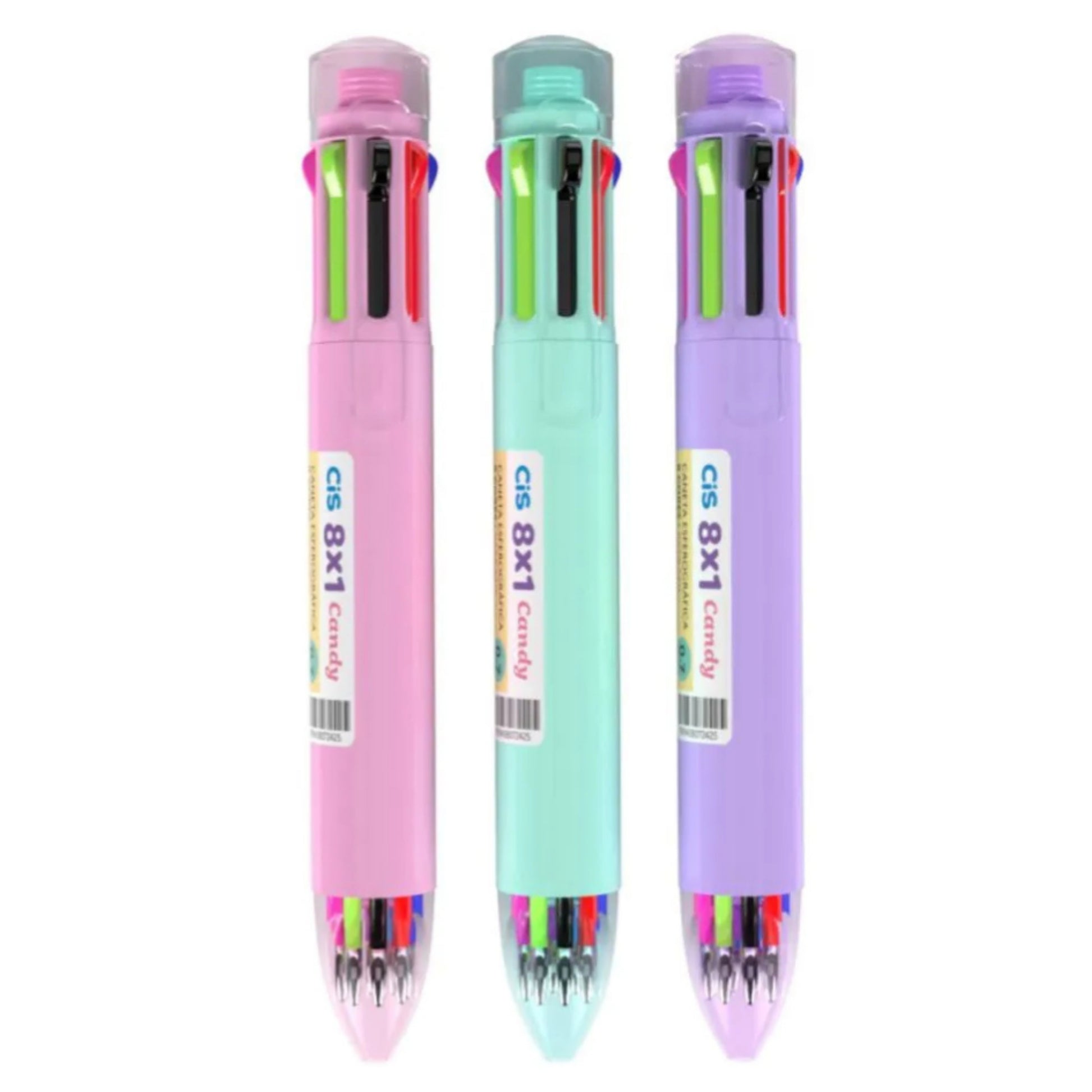 A Caneta Esferográfica CIS Candy 8x1 é a ferramenta perfeita para quem precisa de versatilidade e cor em um único produto. Com um design divertido e cores suaves no corpo, ela oferece oito cores de tinta em uma só caneta (Preto, Vermelho, Azul Escuro, Azul Claro, Laranja, Roxo, Rosa e Verde), bastando um clique para alternar. É ideal para estudos, anotações organizadas e desenhos coloridos.
