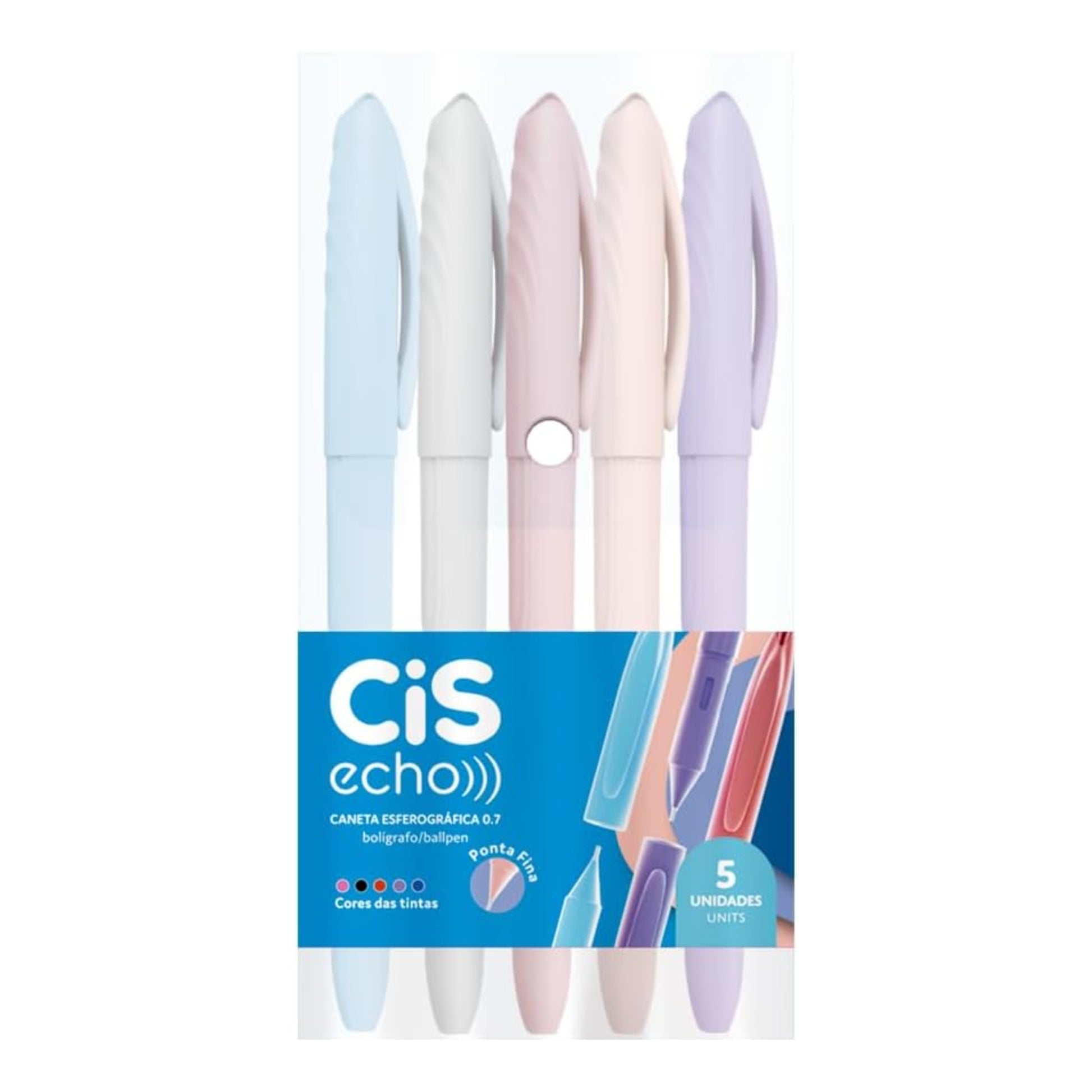 Caneta Esferográfica - CIS - Echo - 0,7mm - Estojo c/ 5 unidades