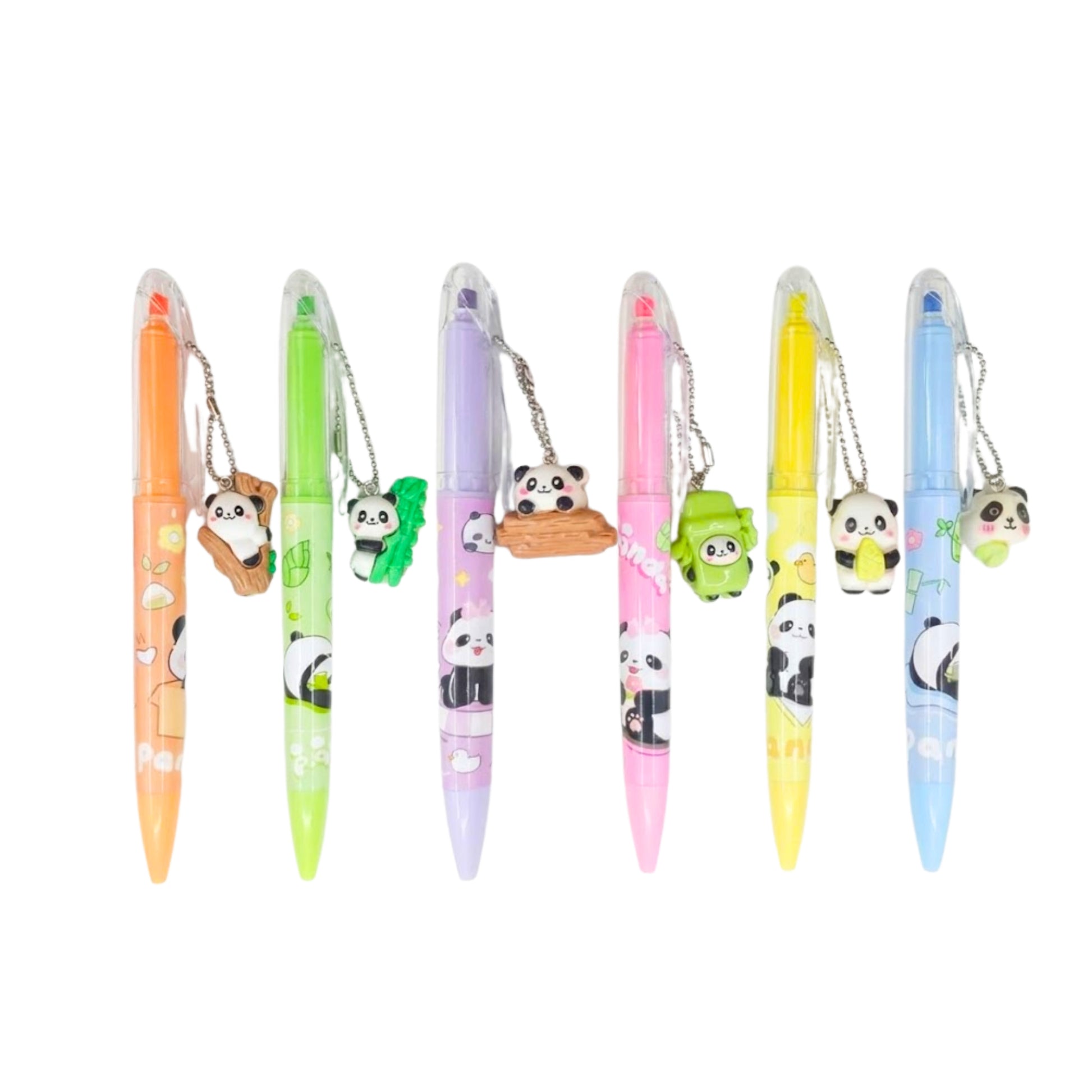 Caneta Esferográfica + Marca Texto - Panda - 2 em 1 c/ Pingente