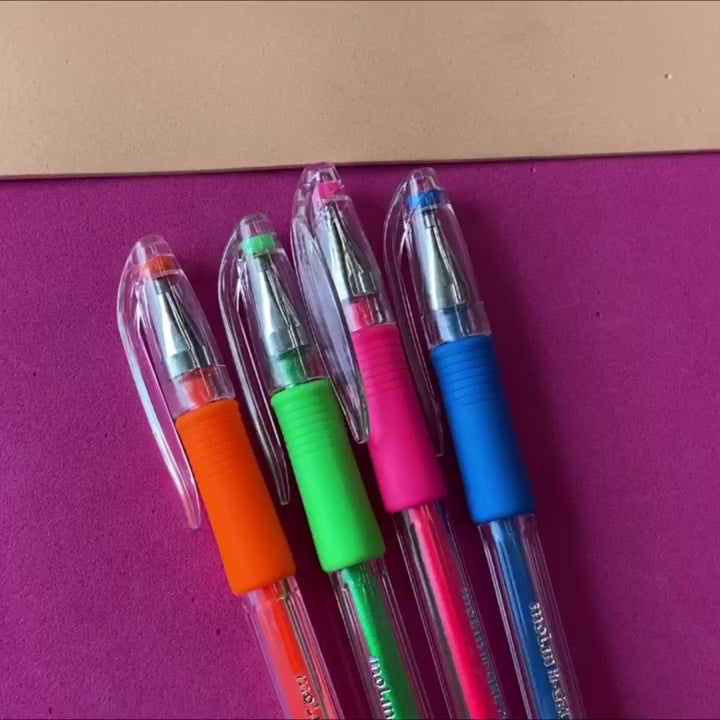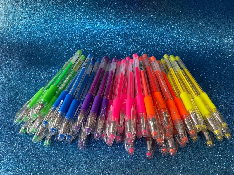 - Caneta gel com ponta fina 0,7 mm e caneta gel branca com ponta 0,8mm.