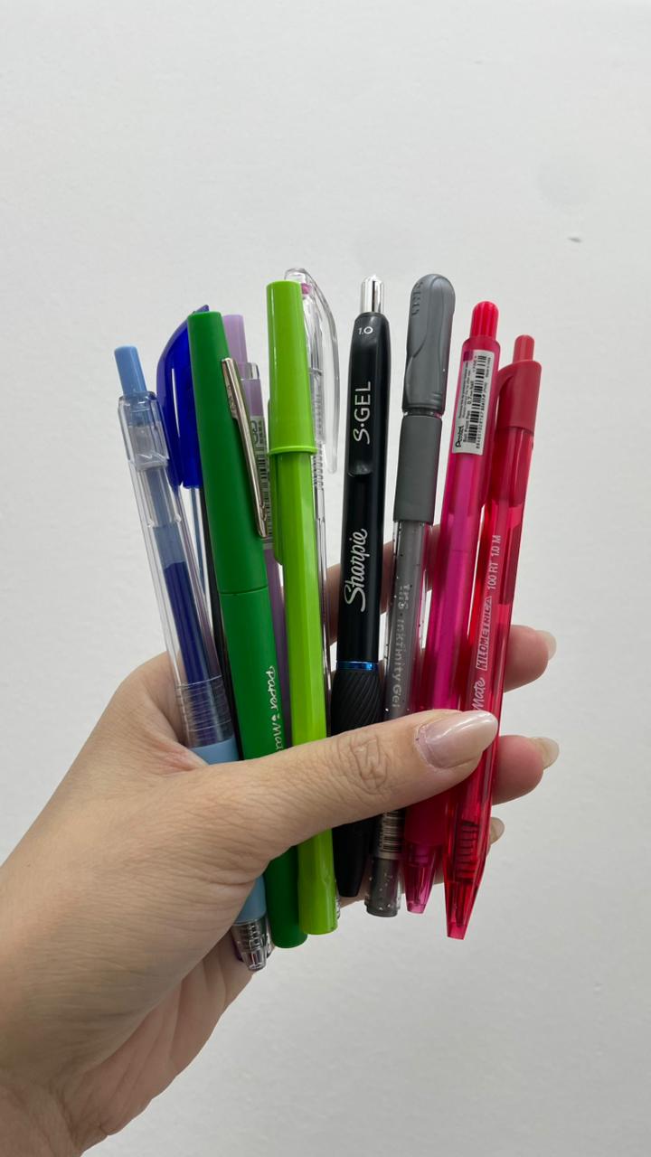 São 10 canetas originais de marcas incríveis como Molin, Paper Mate, Sharpie, Pentel e Tris, com cores sortidas — ideais para quem adora testar novas tonalidades e estilos.