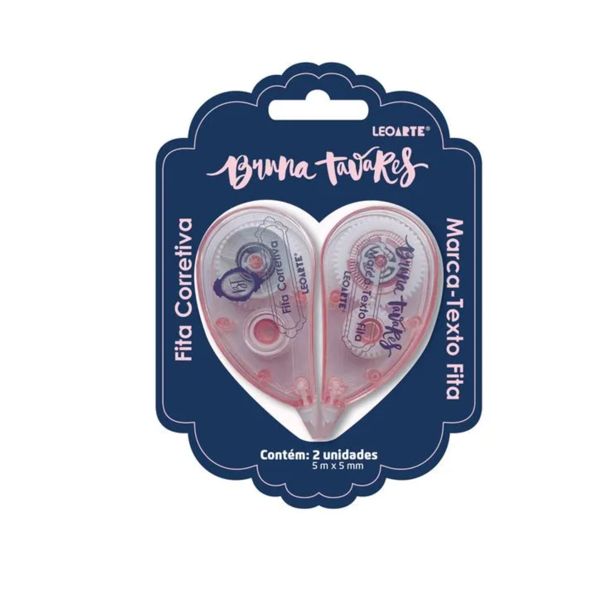 Este kit exclusivo Bruna Tavares traz dois aliados para sua rotina: uma fita corretiva branca e um marca-texto em fita rosa, ambos com aplicação suave, precisa e estampa da collab. O design compacto e ergonômico garante conforto no uso, e juntos, os dois produtos formam um coração no blister, tornando o kit ainda mais delicado e encantador. Ideal para organizar, corrigir e deixar seus materiais impecáveis.