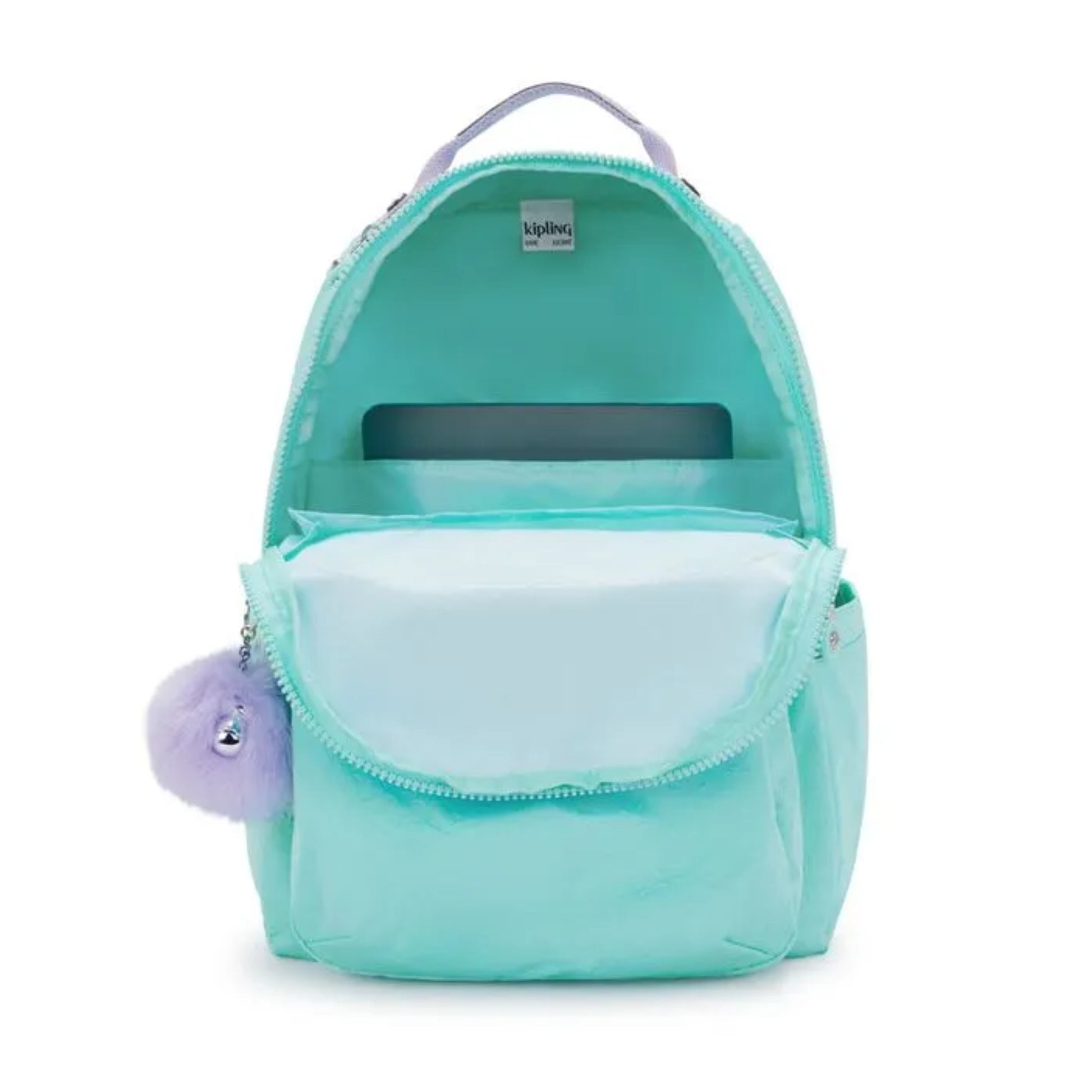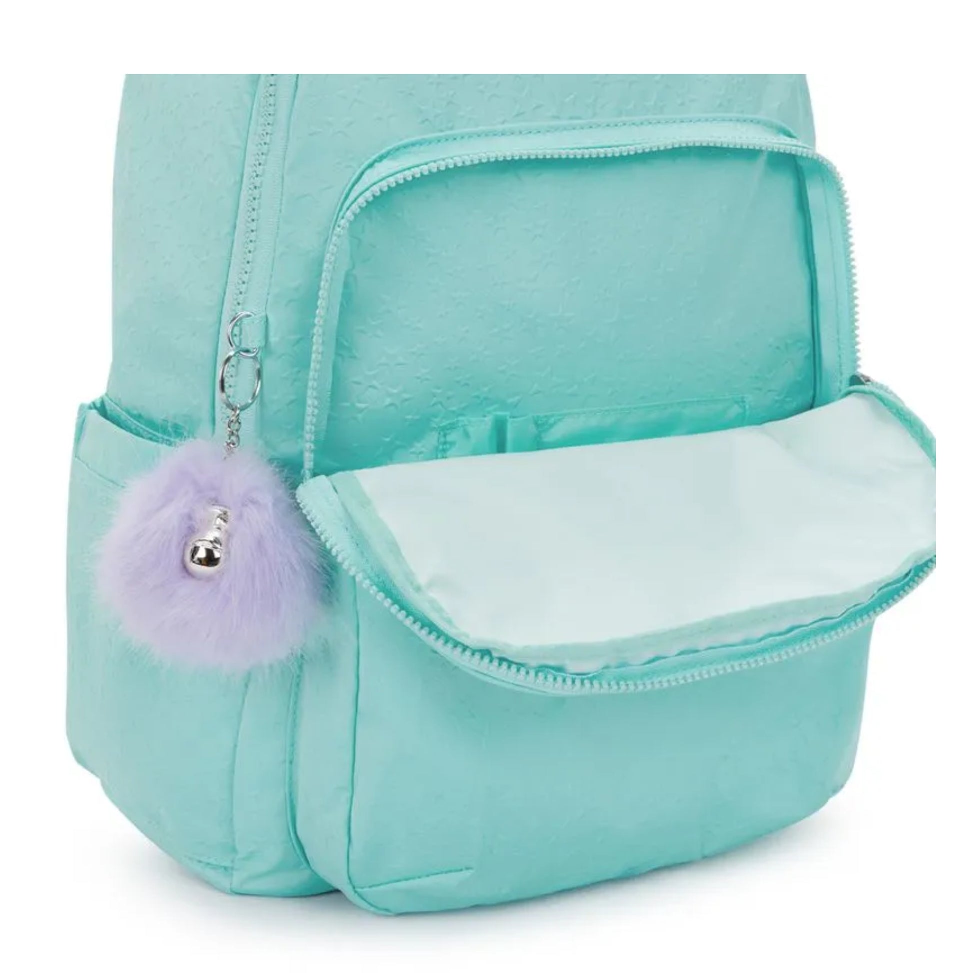 A Mochila Kipling Seoul em tamanho grande foi projetada para quem precisa de máxima funcionalidade no dia a dia. Com uma generosa capacidade de 27 litros, ela oferece quatro compartimentos principais, incluindo uma divisória especial e acolchoada para proteger seu laptop. Seus três zíperes frontais e dois bolsos laterais permitem uma organização inteligente para todos os seus acessórios, desde estojos até garrafas de água. A estampa Funky Stars, com seu tom de verde moderno e detalhes em relevo, garante um visual único, enquanto as alças ajustáveis e acolchoadas proporcionam o conforto ideal para carregar tudo o que você precisa para os estudos ou trabalho.