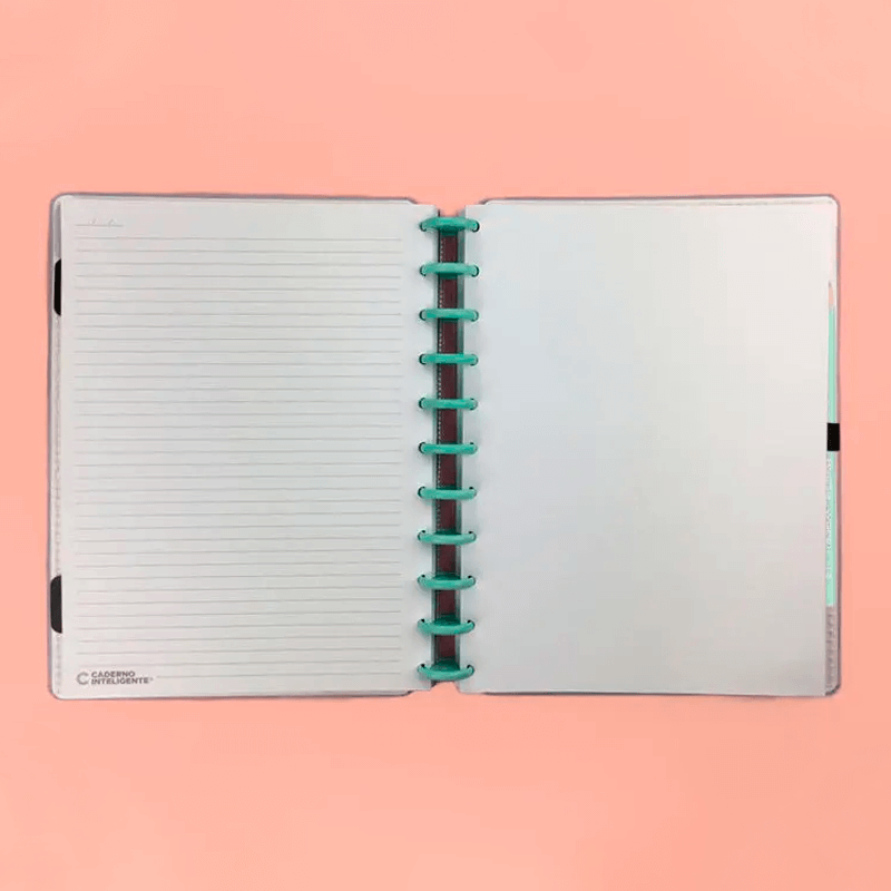 Diferente dos cadernos tradicionais, o caderno inteligente permite retirar e recolocar as folhas sempre que necessário, além de personalizá-lo do seu jeito com diversos tipos de refis e acessórios!