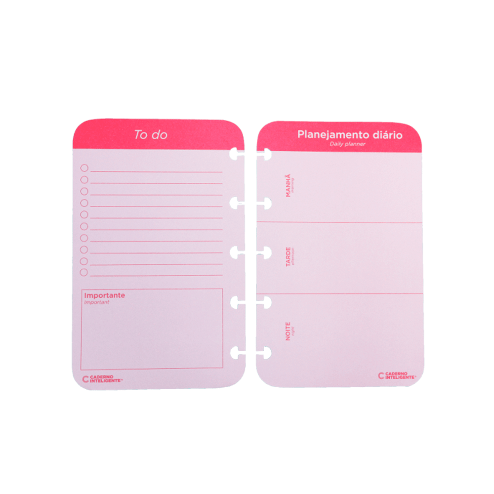 Criado especialmente para dar um gás na sua produtividade e melhorar ainda mais a sua organização, o refil To Do List do Caderno Inteligente® deixa qualquer dia muito mais prático. Com três seções - To Do List, Lembretes Importantes e Planejamento Diário - você consegue visualizar com facilidade tudo o que precisa fazer no dia e garante que não vai esquecer de nada. E, a melhor parte: ele é compatível com todos os nossos tamanhos: Inteligine, A5, Médio e Grande. Além de ser uma ótima opção para compor o seu planner. Esse refil contém 40 folhas de gramatura 120g em papel Offset.