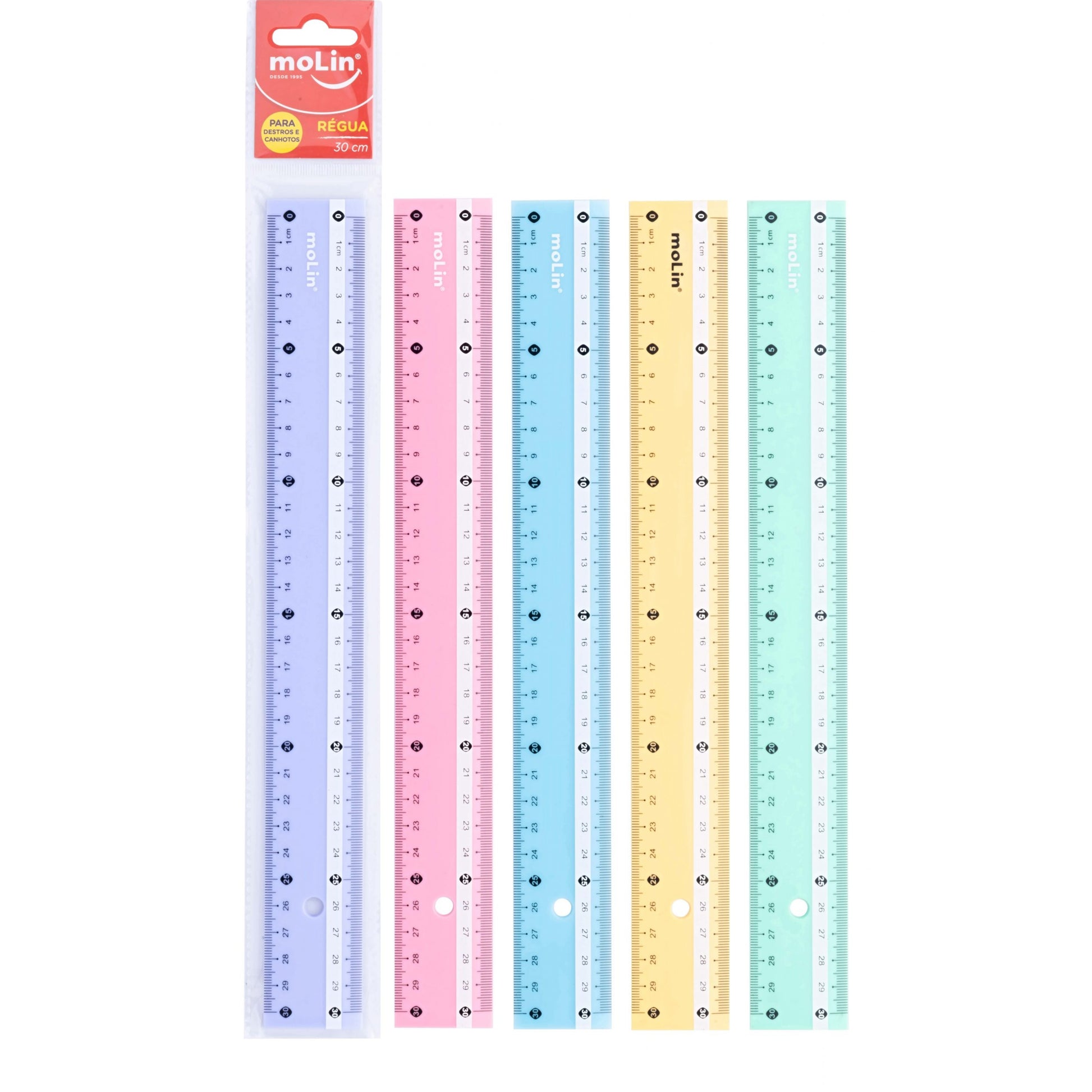 A Régua Molin Pastel é a ferramenta perfeita para garantir traços retos e medições exatas. Com 30cm de comprimento e em cores suaves e agradáveis, seu design inovador é ideal tanto para destros quanto para canhotos, oferecendo clareza e facilidade de uso para todos.