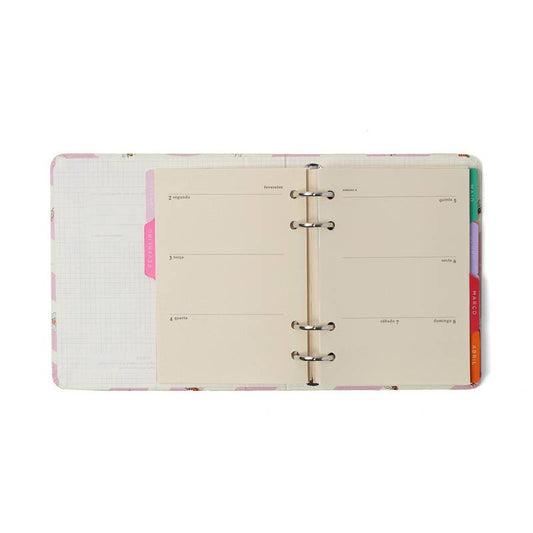 Planner Wire-o 2026 - Cícero - Doce Florada - Semanal Notas c/ Divisórias A5 - Off White