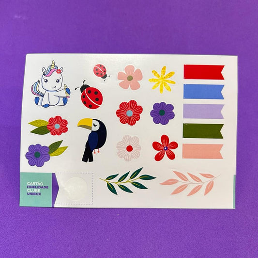 Cartela de Adesivos A6 - Papelaria Unicórnio - Feirinha